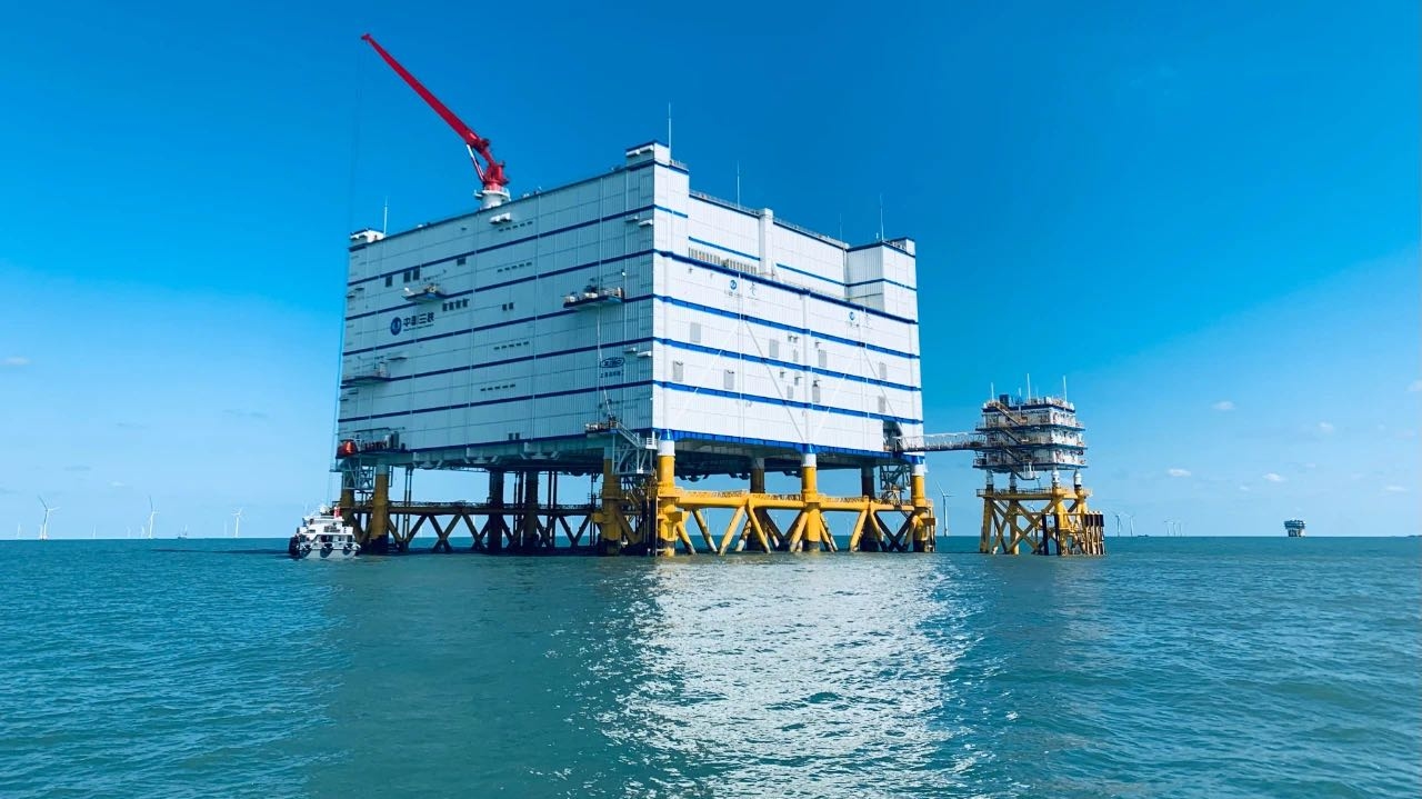 ▲三峡江苏如东海上风电场成功投运亚洲首座海上柔直换流站(三峡能源供图)