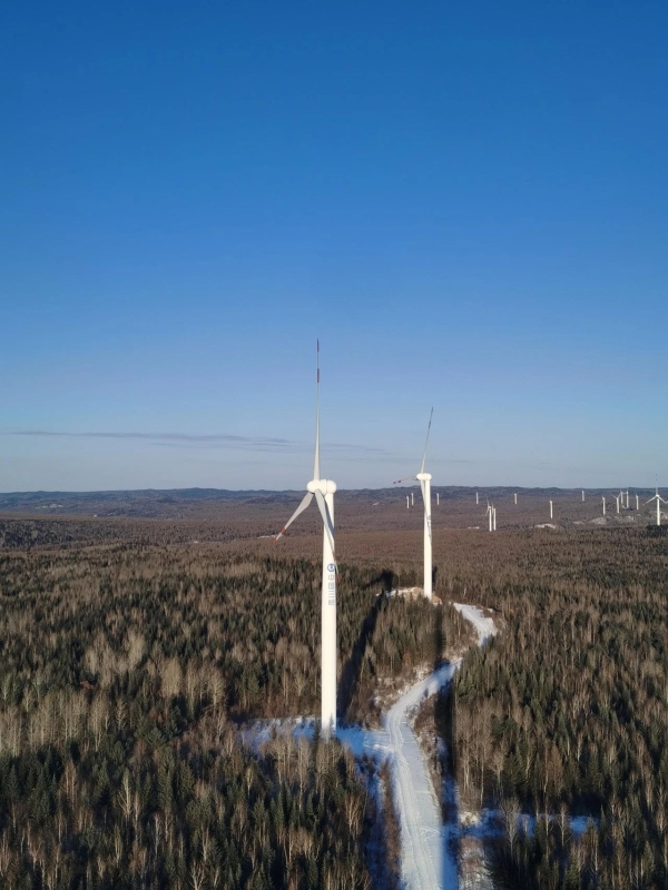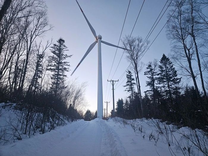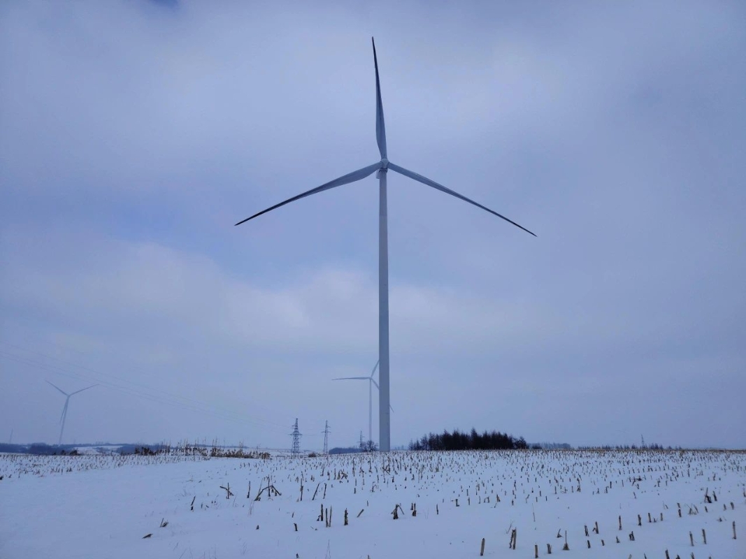 从哈尔滨城区出发,一路往东,经过一个小时车程,抵达位于哈尔滨市阿城区的阿城万兴风电场。这里有50台风机分布在140多平方千米的土地上。一场大雪过后,整个场站就像是盖上了一层厚厚的棉被。