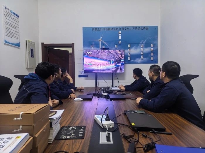 ▲ 伊春老白山风电场现场员工观看第九届亚洲冬季运动会开幕式