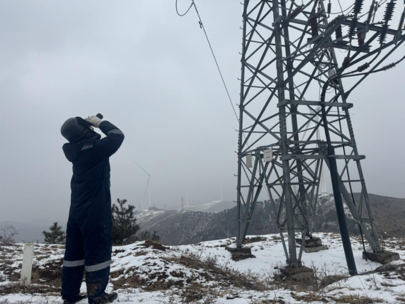 在四川金阳热柯觉风电场,运维人员开展今冬明春电力保供专项检查,在低温、雨雪、冰冻、雷暴等极端恶劣天气下,视情况安排巡检,加强架空线路专项排查。存在引下线、跳线弧度过大情况时,及时停电整改,避免因引下线、跳线舞动导致输电设备非停。