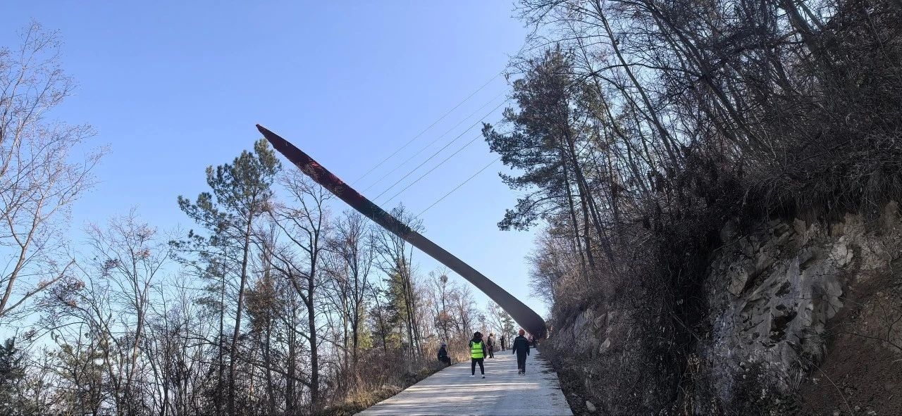 ▲三峡集团巫山大风口60兆瓦风电项目风机运输现场