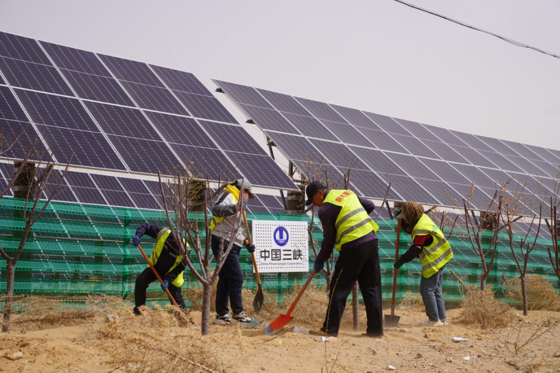 ▲ 在智能滴灌系统的滋润下,今年新种下的沙柳已抽出嫩芽 三峡陆上能源供图