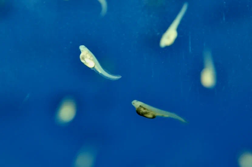 ▲ 2009年中华鲟全人工繁殖获得成功,图为刚刚破膜而出的中华鲟仔鱼。(资料图片)