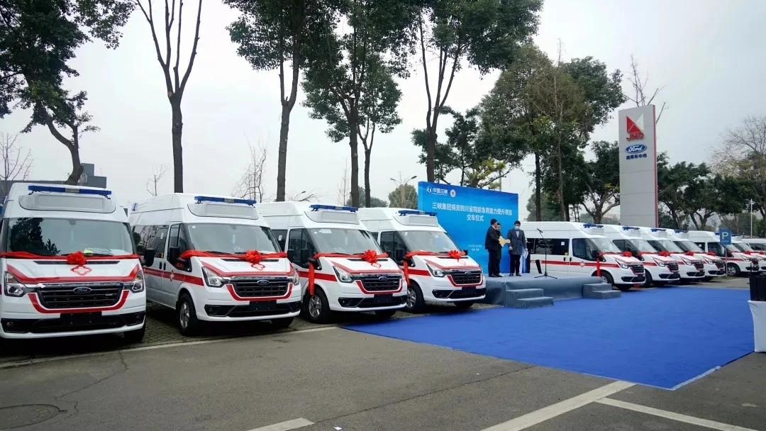 ▲三峡集团捐赠四川省部分市州的救护车 三峡集团四川分公司供图