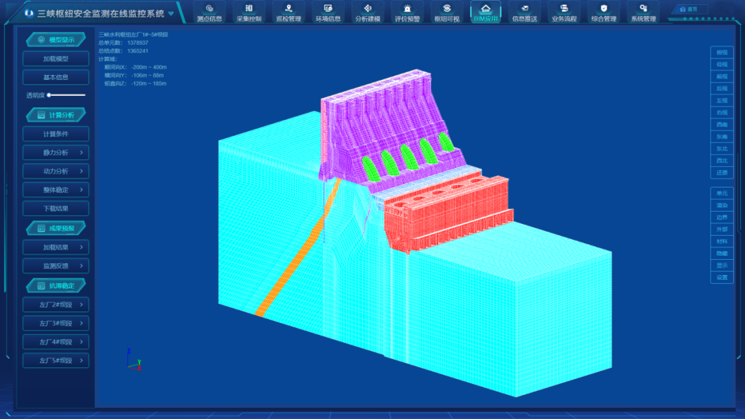 “我们以左厂1—5号坝段为试点,融合运用‘BIM、WebGL、有限元、在线监控’技术,实现了集模型展示、参数反演、计算分析、成果展示、监测反馈于一体的全过程可视化在线分析评价功能。”陈子寒解释,“不仅能看实时数据,还能模拟百年一遇洪水时大坝的状态,为大坝安全性状评价和防洪调度提供科学依据。”