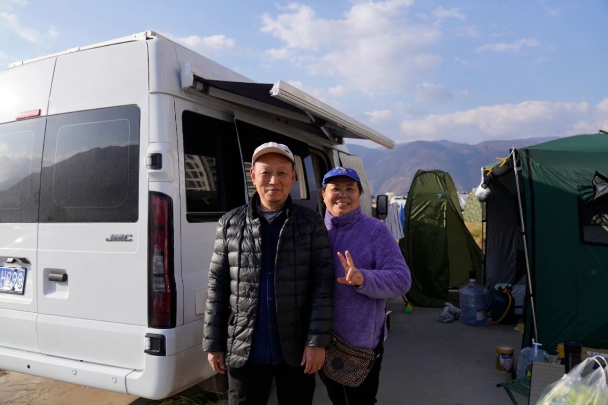 ▲杨叔和爱人在房车前合影 摄影:刘艾菁