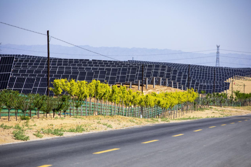 ▲图为2024年6月拍摄的库布其新能源大基地光伏一期100万千瓦“光伏+荒漠化”治理工程现场。本文摄影:张博文