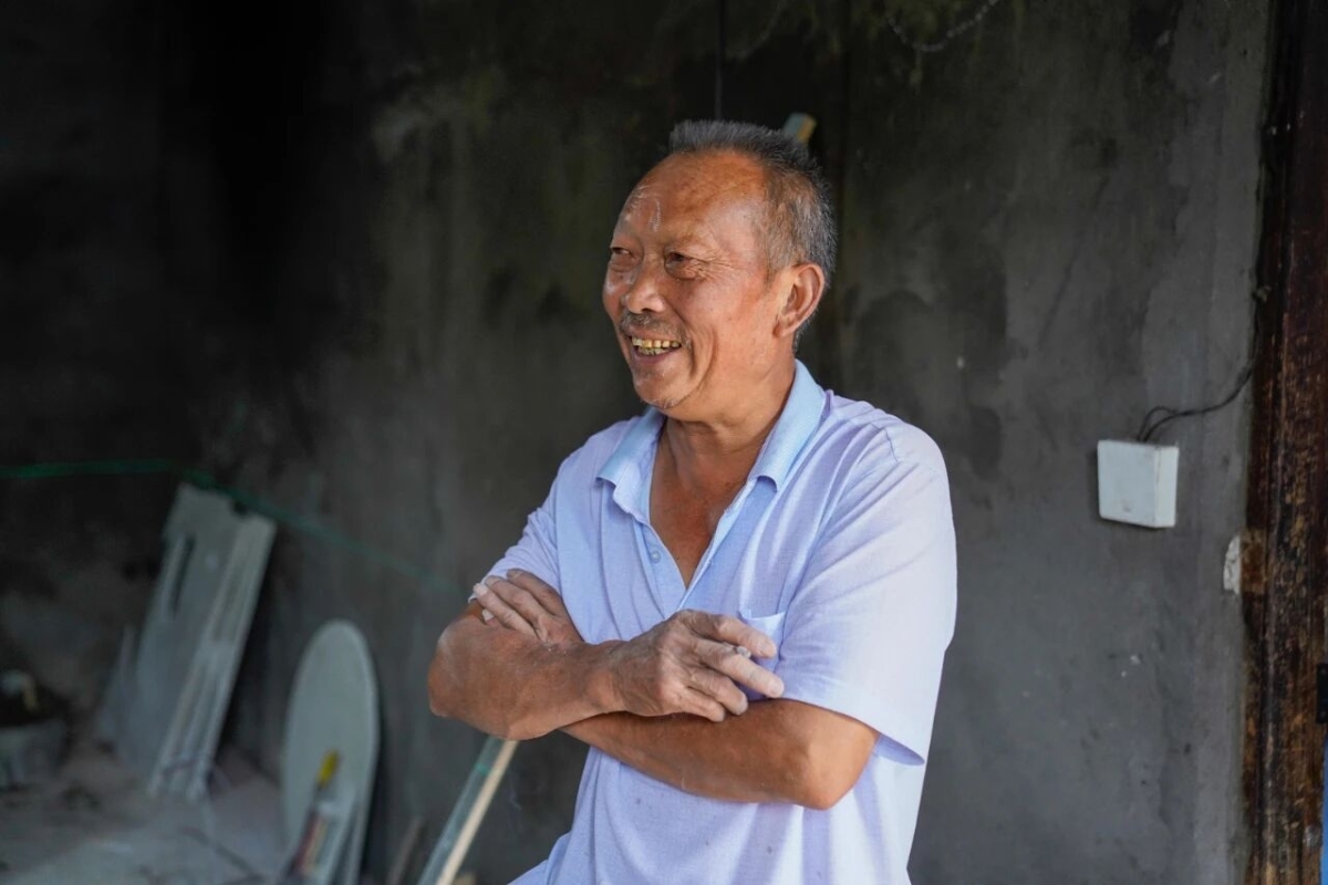 ▲李大爷与记者交谈,对村里的光伏电站赞不绝口