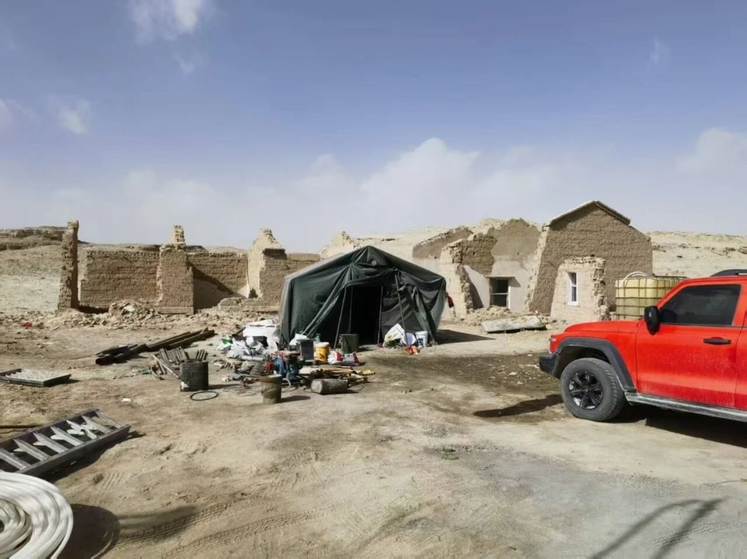 ▲ 断壁残垣前的一顶帐篷,就是建设者们的临时驻地。
