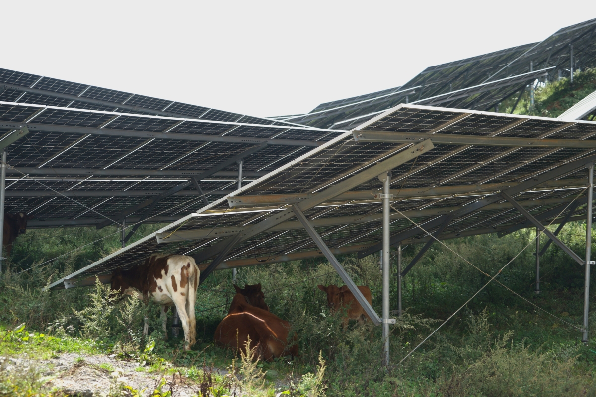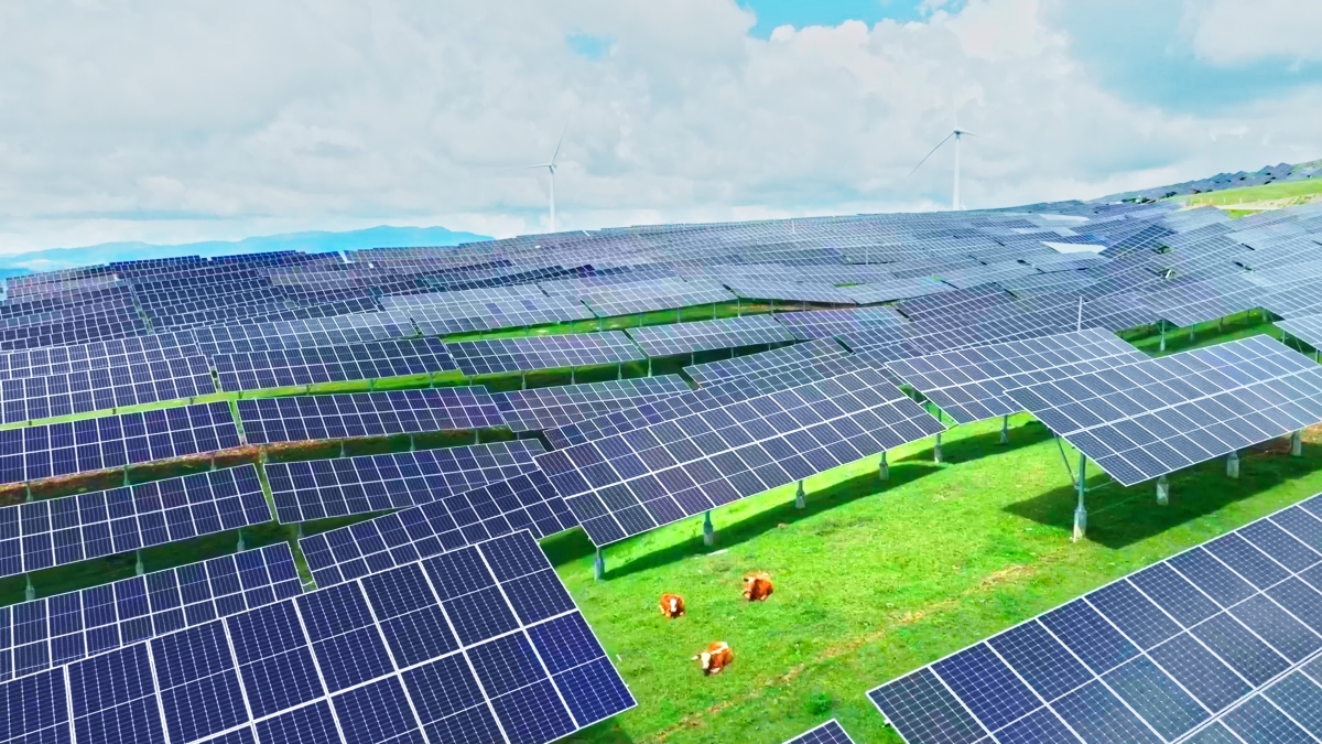 在会理布都光伏项目现场,光伏板柔性支架的采用让光伏板能更好适应山地地形,且不影响山间吃草的牛羊。同时,面对山间疾风能更有韧性、更稳固,加高的光伏板让前期难以布置光伏组件的区域得到更好利用,充分提升了山地利用效率。